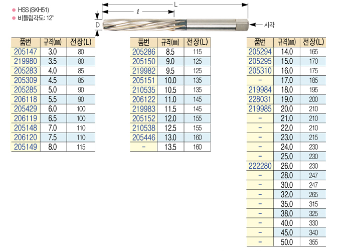 [µð¿ÍÀ̾¾]½ºÆÄÀÌ·² ÇÚµå ¸®¸Ó(SPIRAL HAND REAER) 8.0 mm ~ 12.5 mm