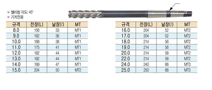 [µð¿ÍÀ̾¾]Ç︮Į¸®¸Ó-MT(HELICAL REAMER ) 8.0 mm ~ 17.0 mm