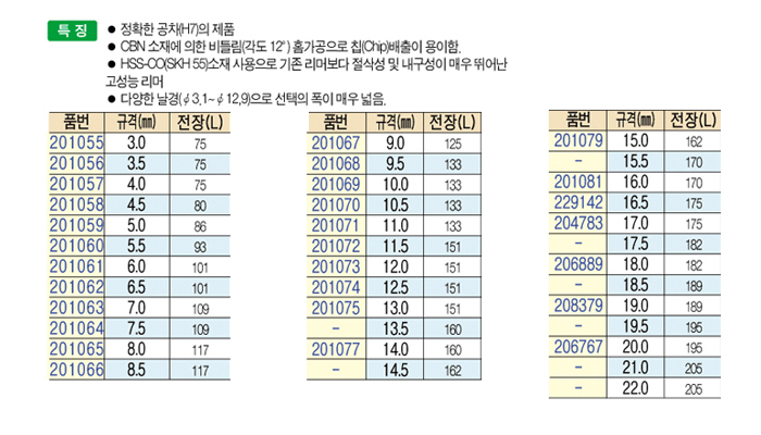 [µð¿ÍÀ̾¾]ôŷ¸®¸Ó(SPIRAL CHUCKING REAMER) 8.0 mm ~ 12.5 mm