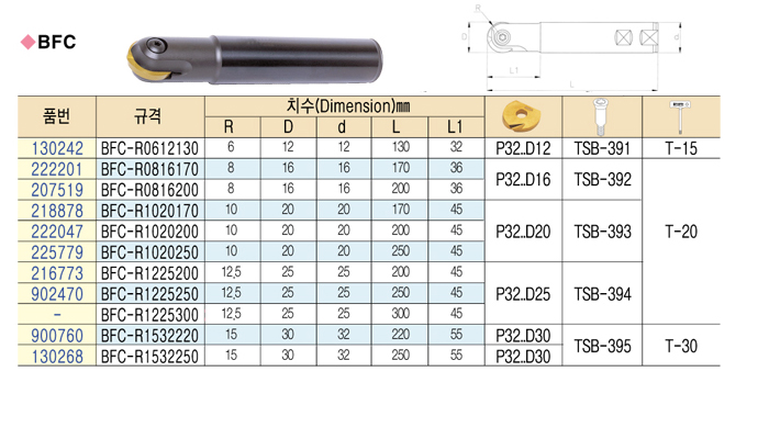 [ºñÇÇÄÚ¸®¾Æ]Á¤»è¿ë º¼Ä±Å¸(FINISHING BALL CUTTER) BFC-R0612130 ~ BFC-R1532220