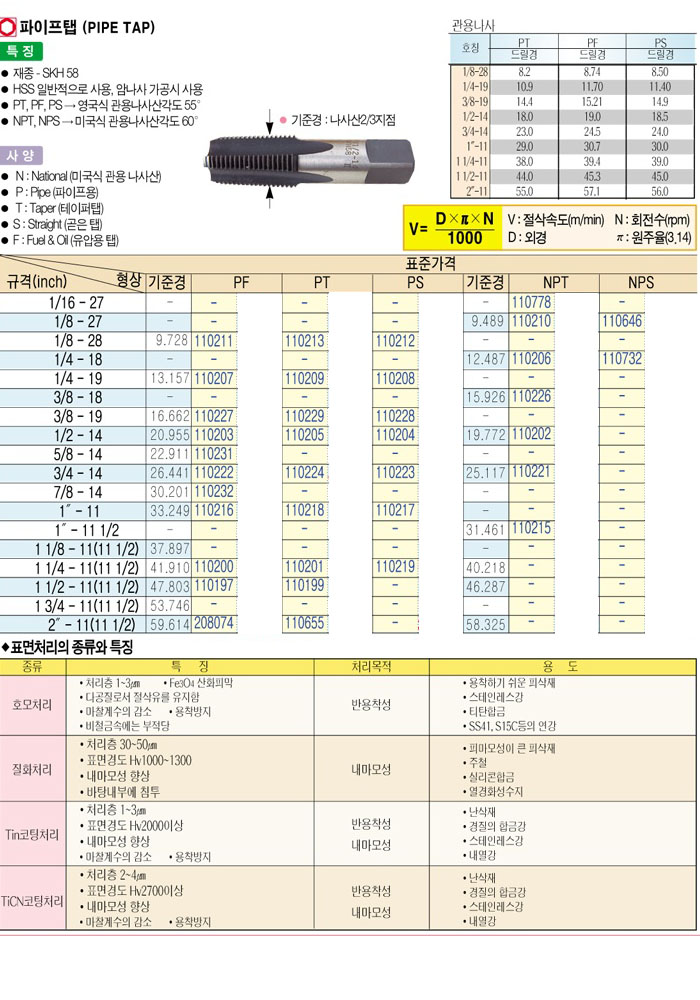 [TAEHWA]ÆÄÀÌÇÁÅÇ(PIPE TAP)NPS 1/8-27~1"-11 1/2