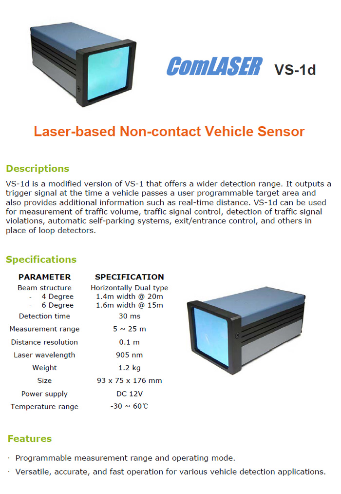 [ComLaser](VS-1d)Laser-based Non-contact Vehicle Sensor(±¤Æø ·¹ÀÌÀú ÃøÁ¤±â)