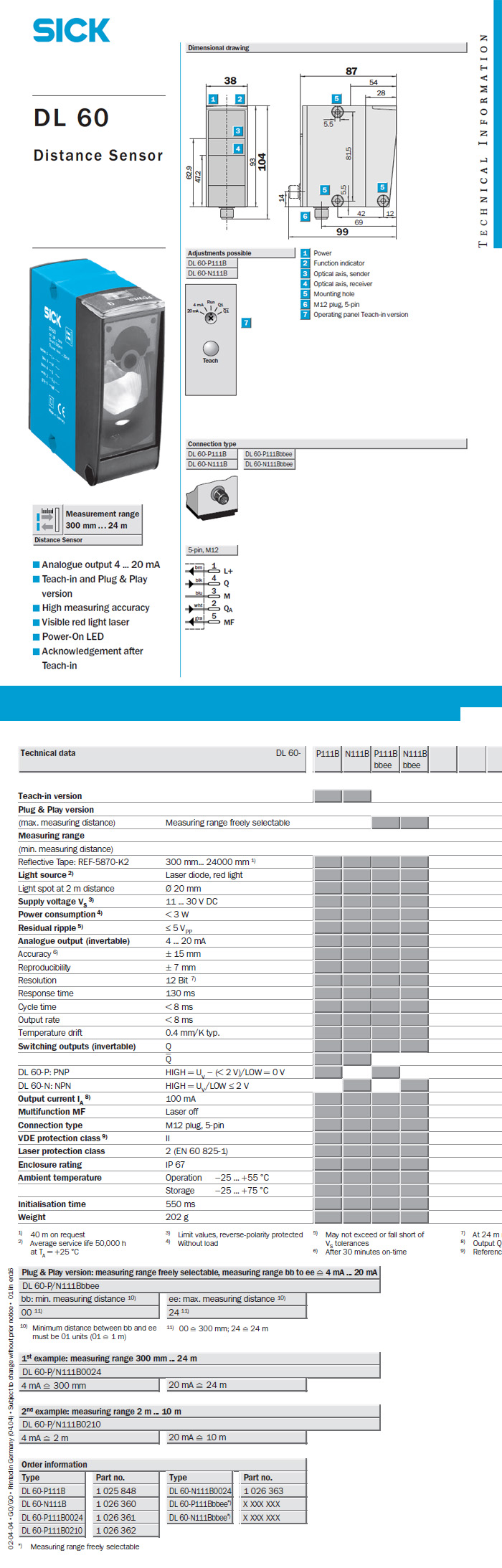 [SICK]DL-60 Distance Measuring Sensor