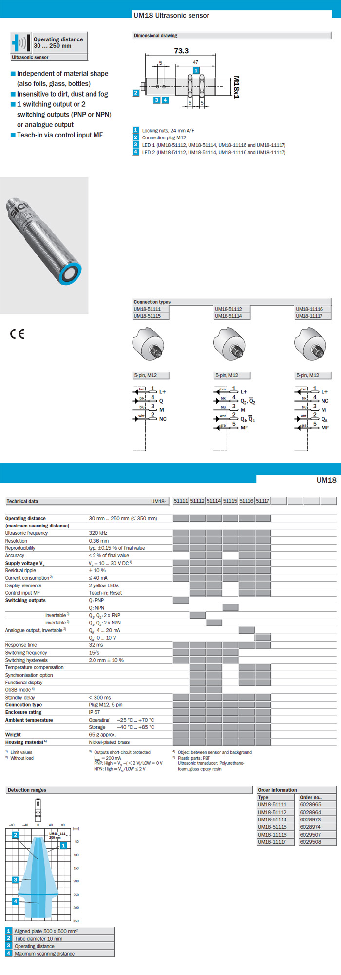 [SICK]UM-18 Ultrasonic Sensors[30 . .. 250 mm]