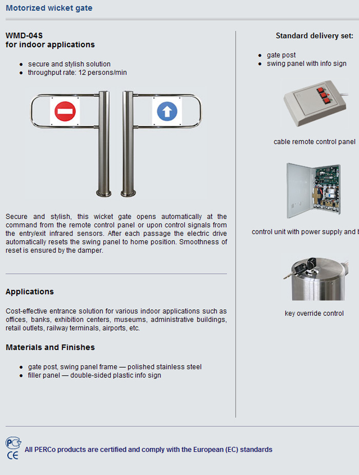 - perfect integration with PERCo turnstiles and railing systems