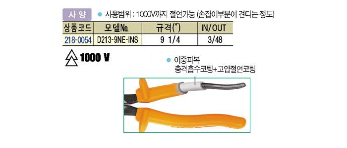 [KLEIN]°í¾Ð¿ë Àý¿¬»«Ä¡ (INSULATED SIDE CUTTING PLOER) D213-9NE-INS