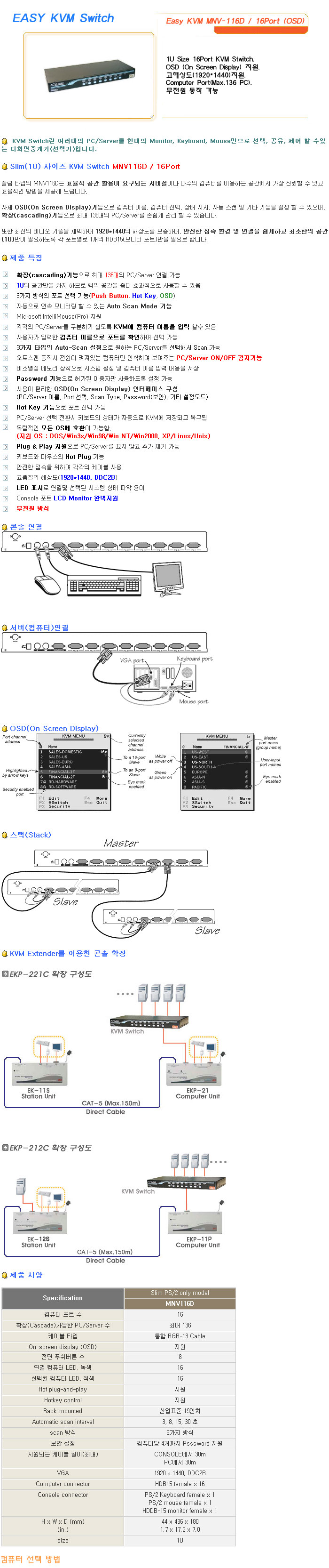 [½Ã½º¶óÀÎ] EASY KVM Switch Easy KVM MNV-116D / 16Port (OSD)