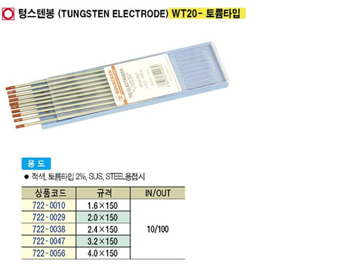 [BOUNCKEN] ÅÖ½ºÅÙºÀ(TUNGSTEN ELECTRODE)WT20-Åä·ýŸÀÔ (10°³¼¼Æ®)