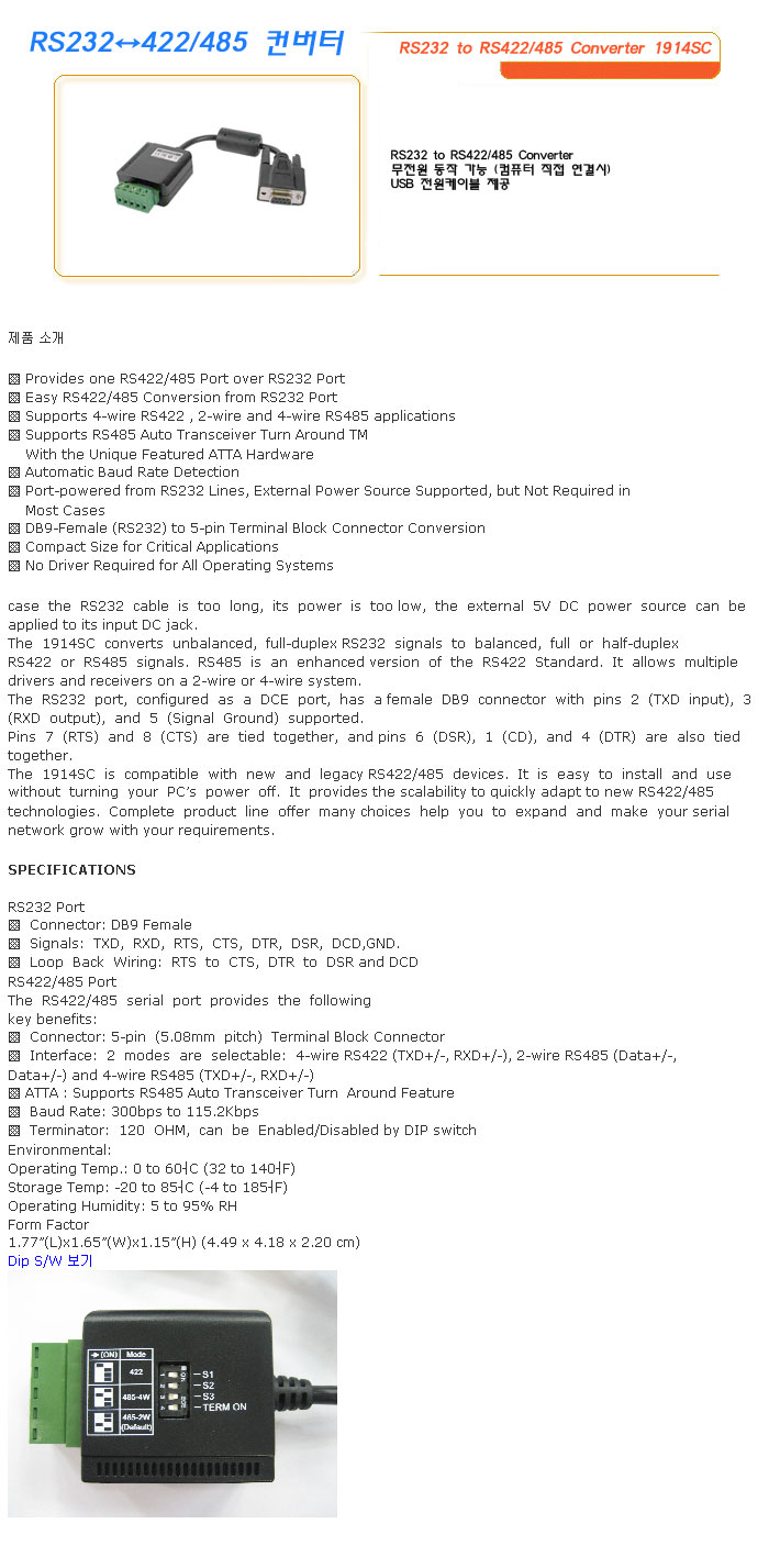 [½Ã½º¶óÀÎ] RS232¡ê422/485 ÄÁ¹öÅÍ RS232 to RS422/485 Converter 1914SC