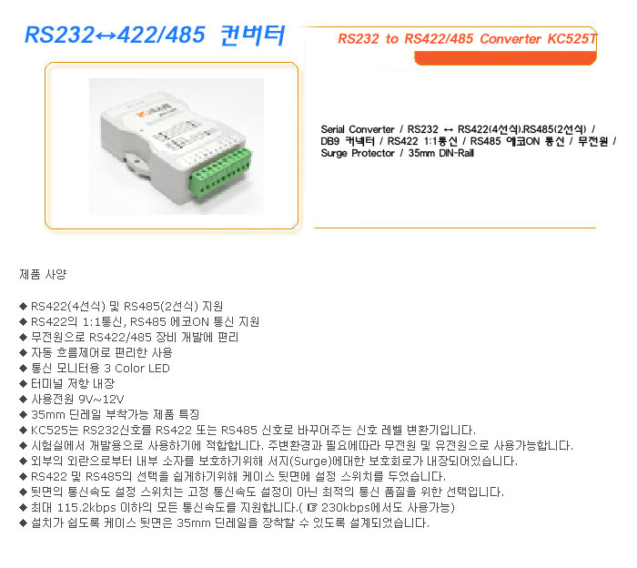 [½Ã½º¶óÀÎ] RS232¡ê422/485 ÄÁ¹öÅÍ RS232 to RS422/485 Converter KC525