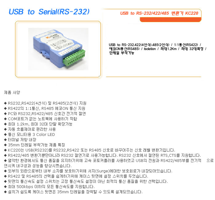 [½Ã½º¶óÀÎ] USB to Serial(RS-232) USB to RS-232/422/485 º¯È¯±â KC220