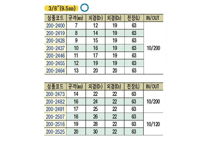 [GENIUS]·Õ ÀÓÆÑ¼ÒÄÏ 3/8"(9.5mm)(DEEP IMPACT SOCKET) 7 mm ~ 17 mm