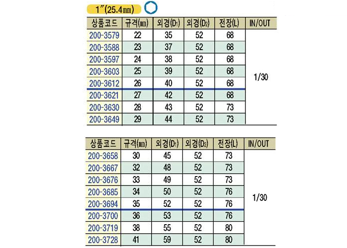 [GENIUS]³¯¾ÀÇü ÀÓÆÑ¼ÒÄÏ 1"(25.4mm)(THIN WALL IMPACT SOCKET) 33 mm ~ 41 mm