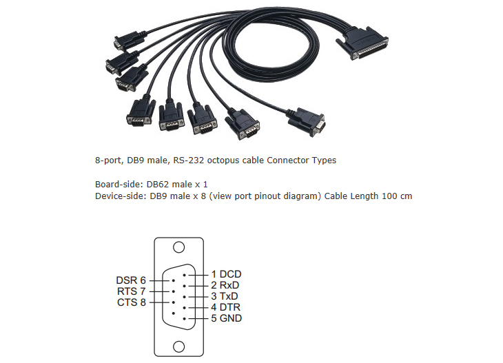 [SL] MOXA DB62M to 8 x DB9M RS-232 Cable(Opt8D, CBL-M62M9x8-100)