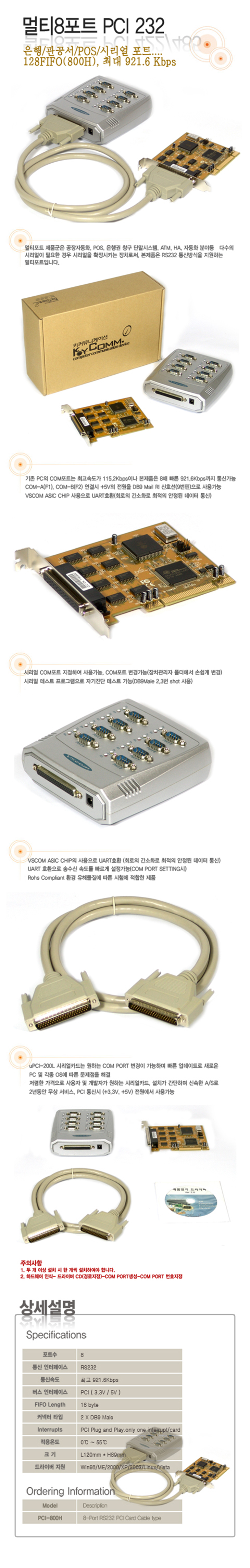 [SL] VSCOM RS-232C 8Æ÷Æ® PCI ½Ã¸®¾óÄ«µå ÆÐ³ÎŸÀÔ(uPCI-800HB, RS232 8Port Panel)
