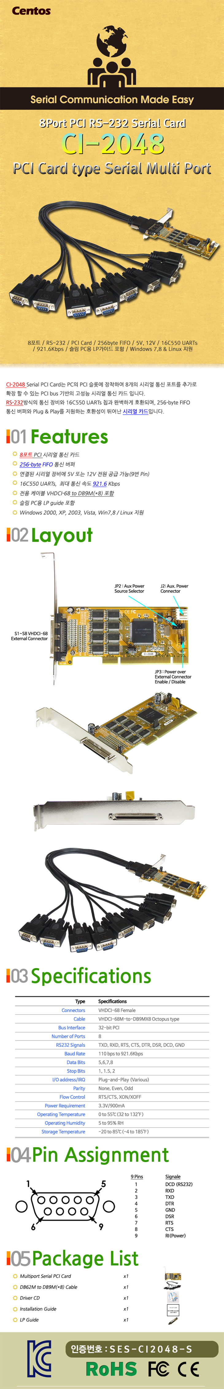 [SL] Centos RS-232C 8Port PCI Card(CI-2048 Ver2.0, 8Æ÷Æ® RS232, 256byte FIFO, 16C550 UART, 921.6Kbps)