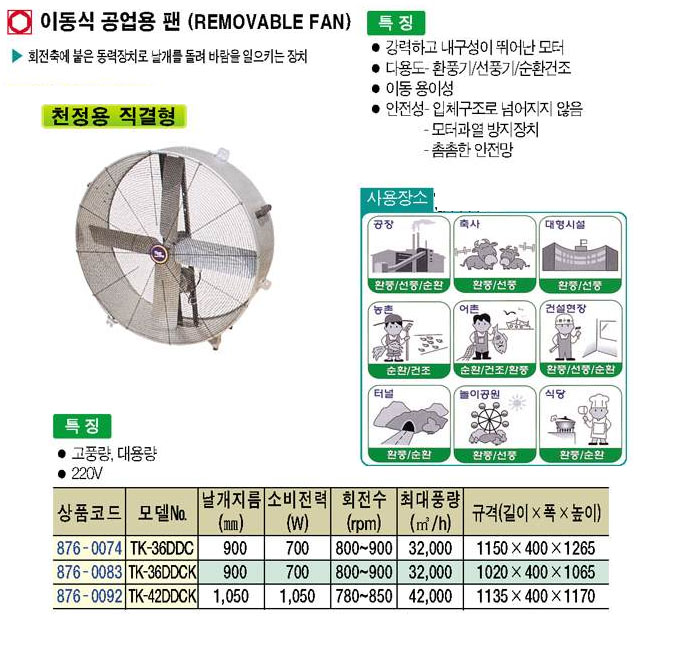 [ŸÀ̰ÅÅ·] À̵¿½Ä °ø¾÷¿ë ÆÒ(REMOVABLE DAN) õÁ¤¿ë Á÷°áÇü TK-36DDC ~ TK-42DDCK