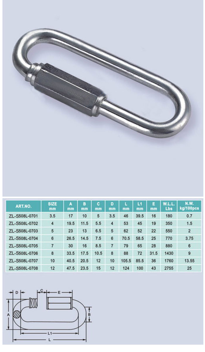 [ZHELI]STAINLESS STEEL,WIDE JAN QUICK LINK(AISI 304 or 316) ZL-S508L