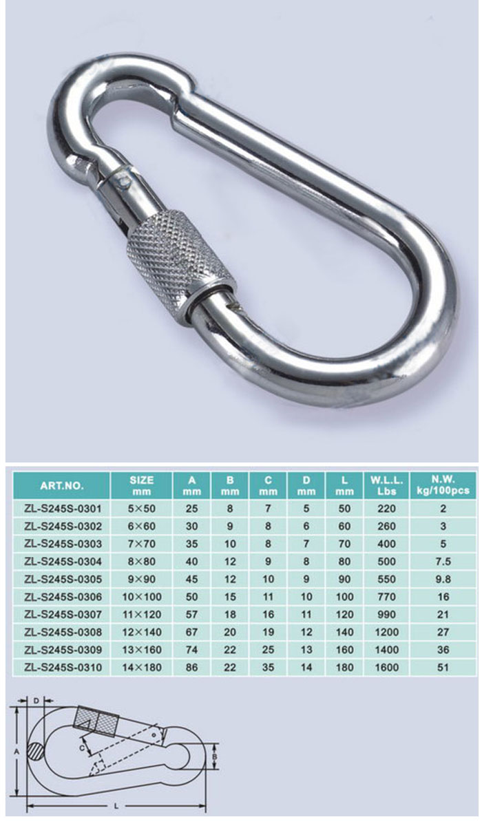 [ZHELI]STAINLESS STEEL.SNAP HOOK WITH SCREW(AISI304 or 316) ZL-S245S