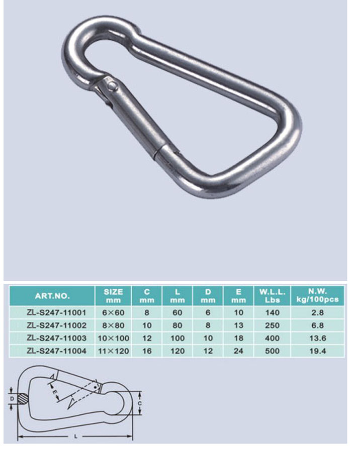 [ZHELI]STAINLESS STEEL,OBLIQUE ANGLE SNAPHOOK(AISI 304 or 316) ZL-S247