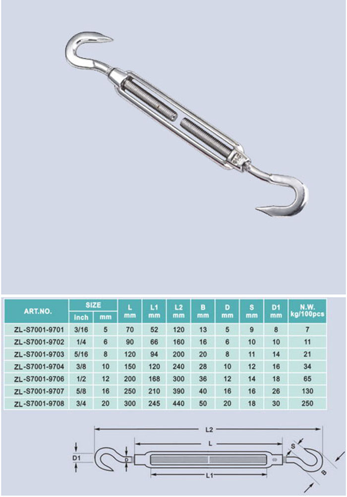 [ZHELI]STAINLESS STEEL,OPEN TYPE TURNBUCKLEAISI (304 or 316 HOOK/EYE,EYE/EYE,HOOK/HOOK) ZL-S7001