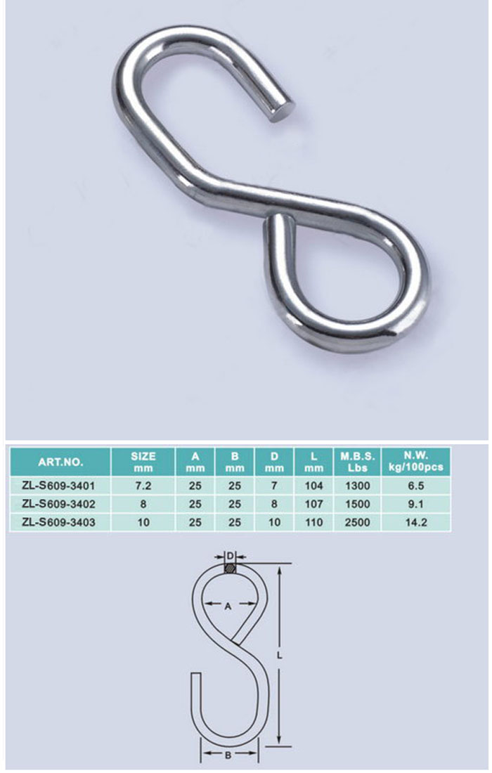 [ZHELI]STAINLESS STEEL, S-HOOK(AISI304 or 316) ZL-S609