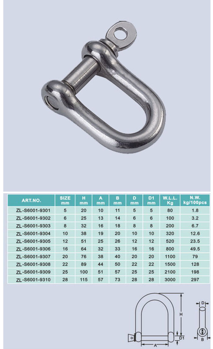 [ZHELI]STAINLESS STEEL,EUROPEAN TYPE DEE SHACKLE(AISI304 or 316) ZL-S6001