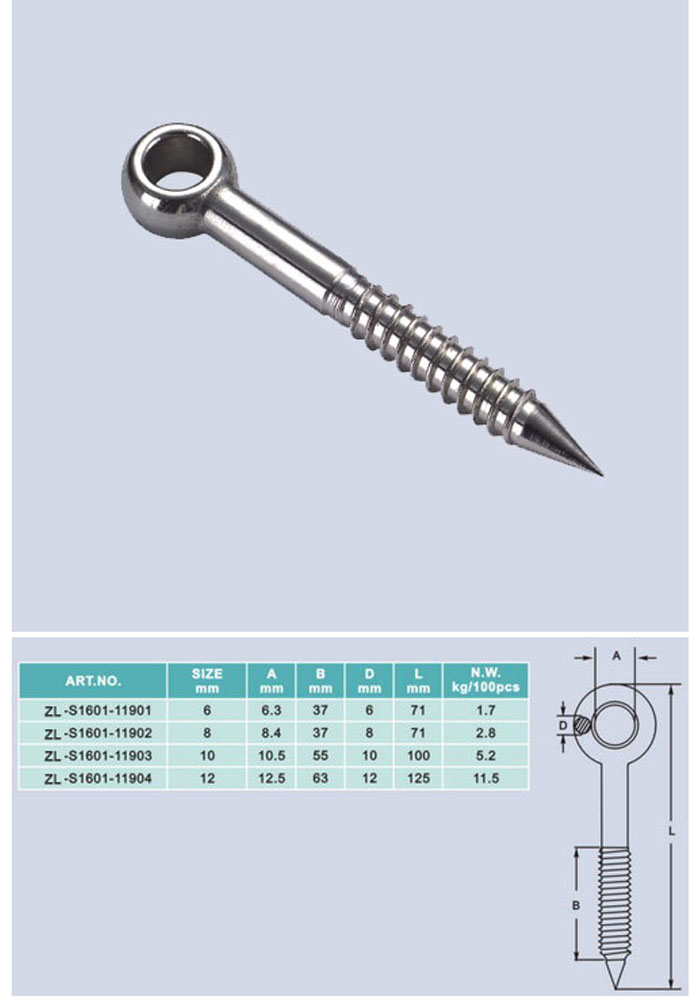 [ZHELI]STAINLESS STEEL, EYE HEAD LAG SCREWS(AISI) ZL-S1601