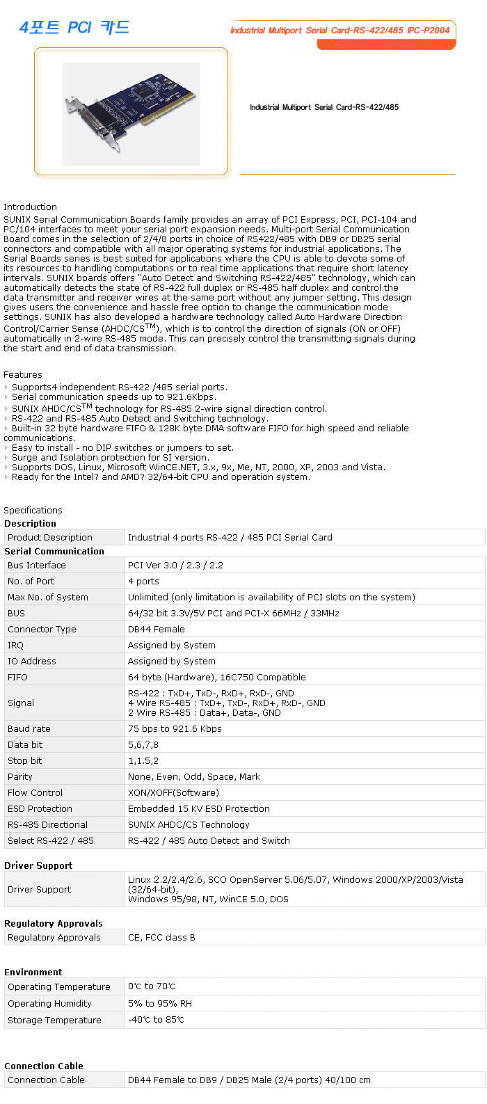 [½Ã½º¶óÀÎ] 4Æ÷Æ® PCI Ä«µå Industrial Multiport Serial Card-RS-422/485 IPC-P2004 (°¡°Ý¹®ÀÇ)