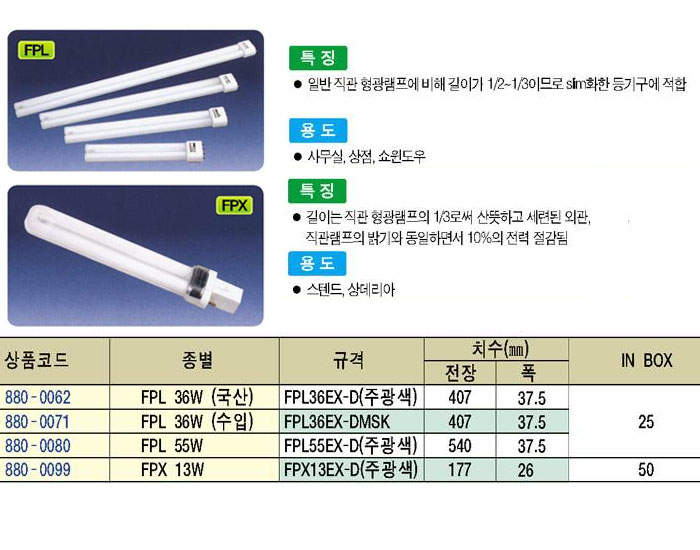 [¹ø°³Ç¥]ÄÄÆÑÆ®µî(COMPACT FLUORESCENT TUBE) FPL FPX