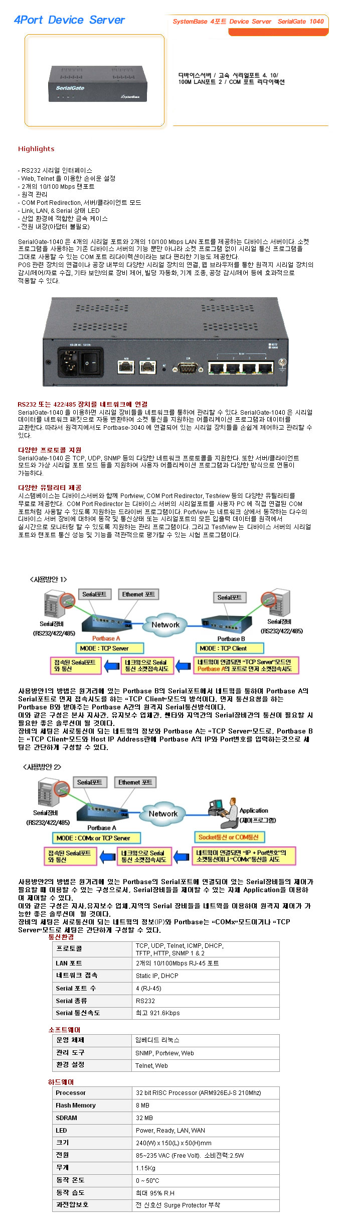 [½Ã½º¶óÀÎ] 4Port Device Server SystemBase 4Æ÷Æ® Device Server SerialGate 1040
