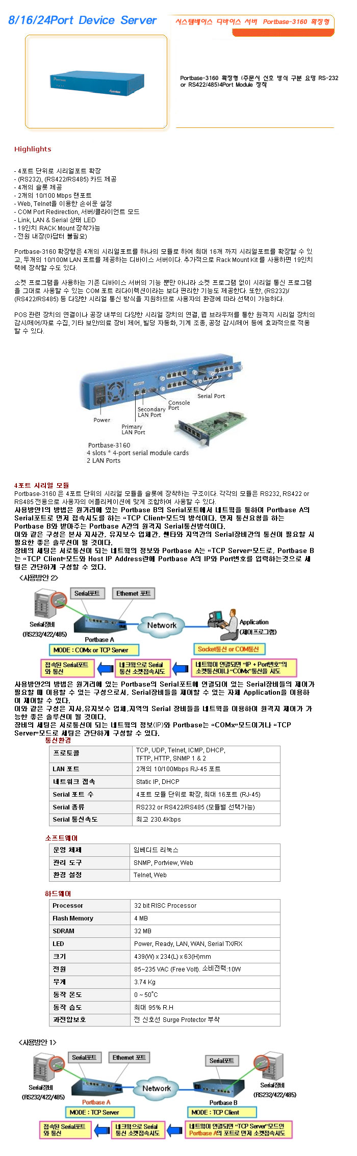 [½Ã½º¶óÀÎ] 8/16/24Port Device Server ½Ã½ºÅÛº£À̽º µð¹ÙÀ̽º ¼­¹ö Portbase-3160 È®ÀåÇü