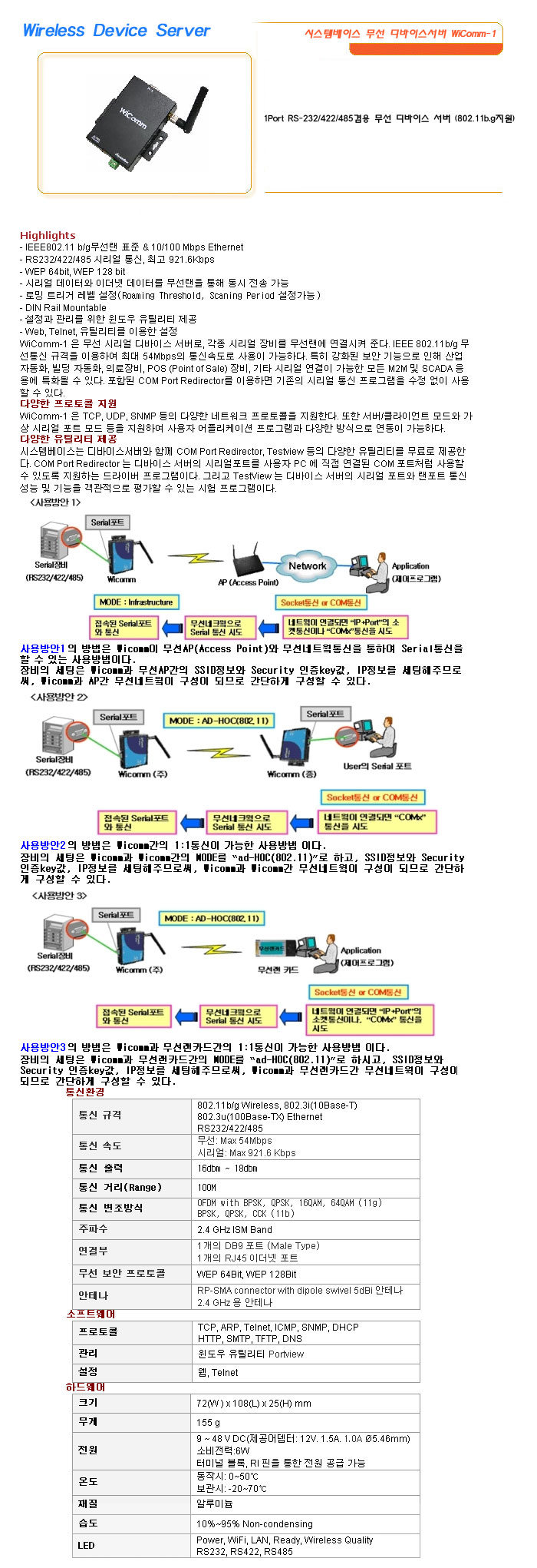[½Ã½º¶óÀÎ] Wireless Device Server ½Ã½ºÅÛº£À̽º ¹«¼± µð¹ÙÀ̽º¼­¹ö WiComm-1