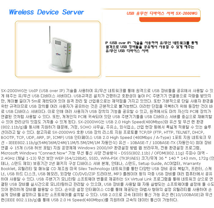 [½Ã½º¶óÀÎ] Wireless Device Server USB À¯¹«¼± µð¹ÙÀ̽º ¼­¹ö SX-2000WG