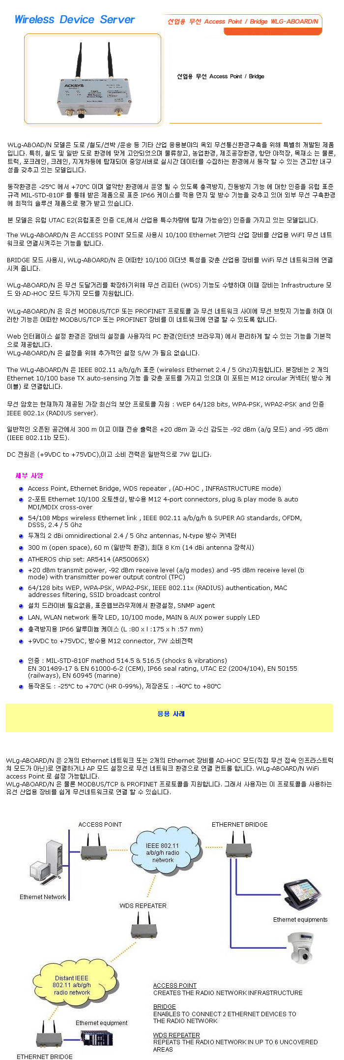 [½Ã½º¶óÀÎ] Wireless Device Server »ê¾÷¿ë ¹«¼± Access Point / Bridge WLG-ABOARD/N (°¡°Ý¹®ÀÇ)