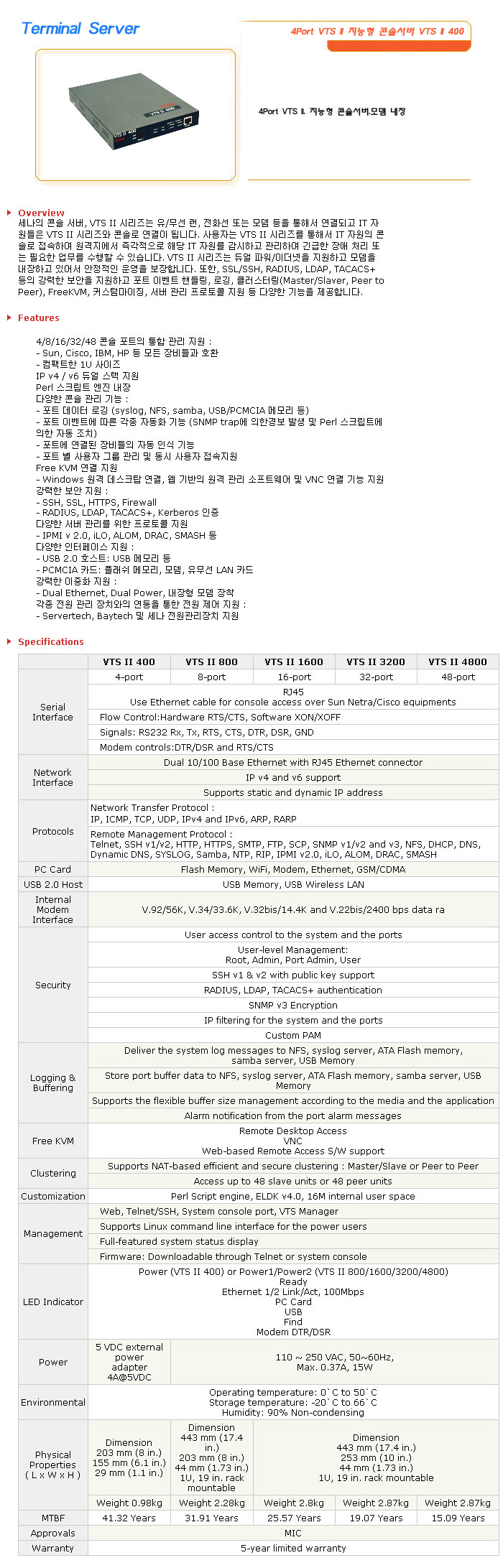 [½Ã½º¶óÀÎ] Terminal Server 4Port VTS II Áö´ÉÇü Äּܼ­¹ö VTS II 400