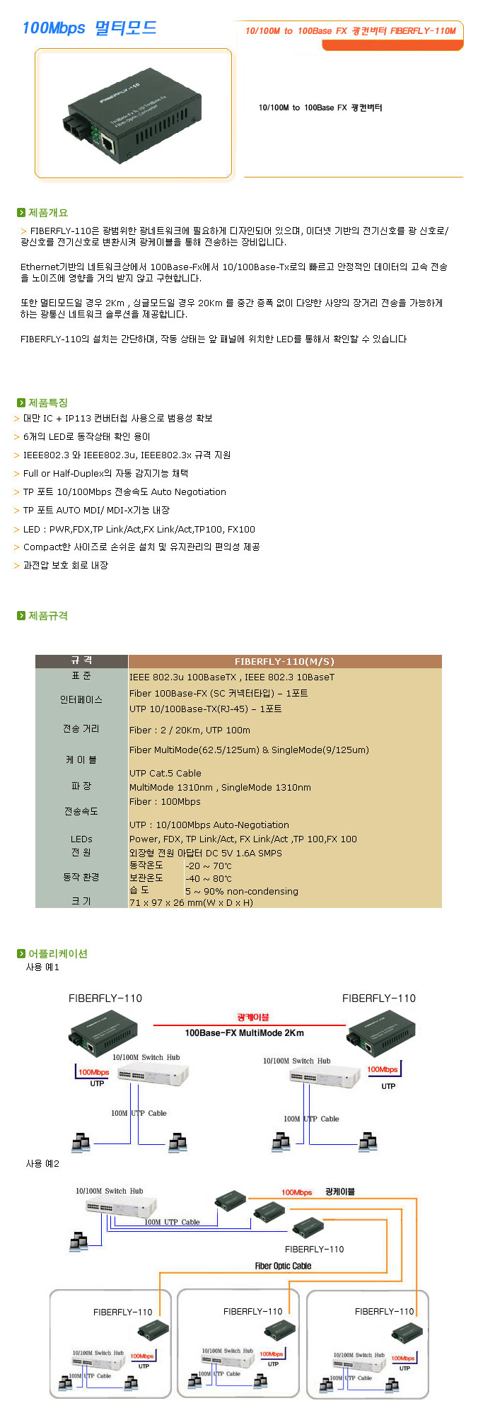 [½Ã½º¶óÀÎ] 100Mbps ¸ÖƼ¸ðµå 10/100M to 100Base FX ±¤ÄÁ¹öÅÍ FIBERFLY-110M=>Á¦Ç°´ÜÁ¾!