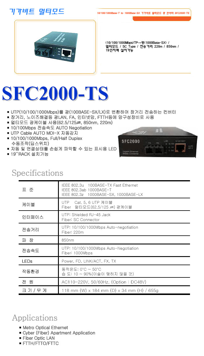 [½Ã½º¶óÀÎ] ±â°¡ºñÆ® ¸ÖƼ¸ðµå 10/100/1000Base-T to 1000Base-SX ±â°¡ºñÆ® ¸ÖƼ¸ðµå ±¤ ÄÁ¹öÅÍ SFC2000-TS
