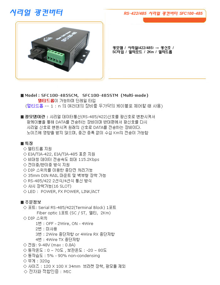 [½Ã½º¶óÀÎ] ½Ã¸®¾ó ±¤ÄÁ¹öÅÍ RS-422/485 ½Ã¸®¾ó ±¤ÄÁ¹öÅÍ SFC100-485