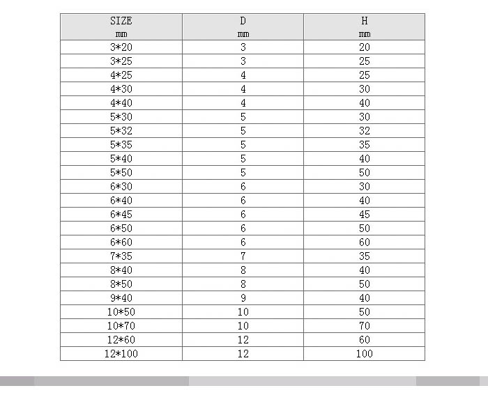 AISI: 304 or 316 SIZE: 3*20 mm to13*120 mm