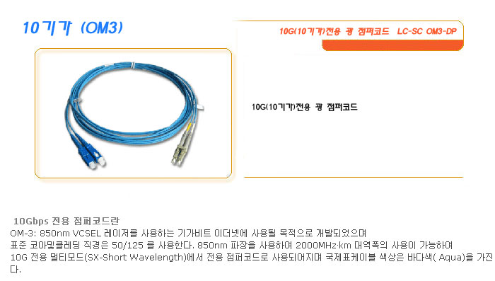 [SL] 10±â°¡ (OM3) 10G(10±â°¡)Àü¿ë ±¤ Á¡ÆÛÄÚµå LC-SC OM3-DP