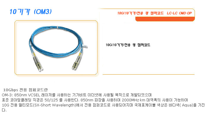 [SL] 10±â°¡ (OM3) 10G(10±â°¡)Àü¿ë ±¤ Á¡ÆÛÄÚµå LC-LC OM3-DP