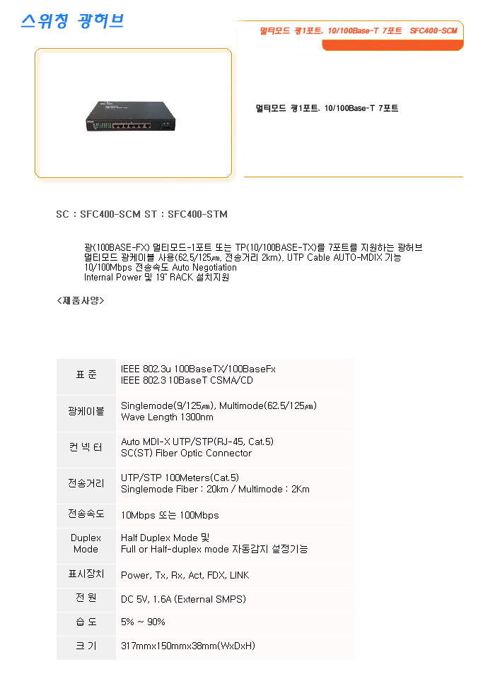 [SL] ¸ÖƼ¸ðµå ±¤1Æ÷Æ®, 10/100Base-T 7Æ÷Æ® SFC400-SCM