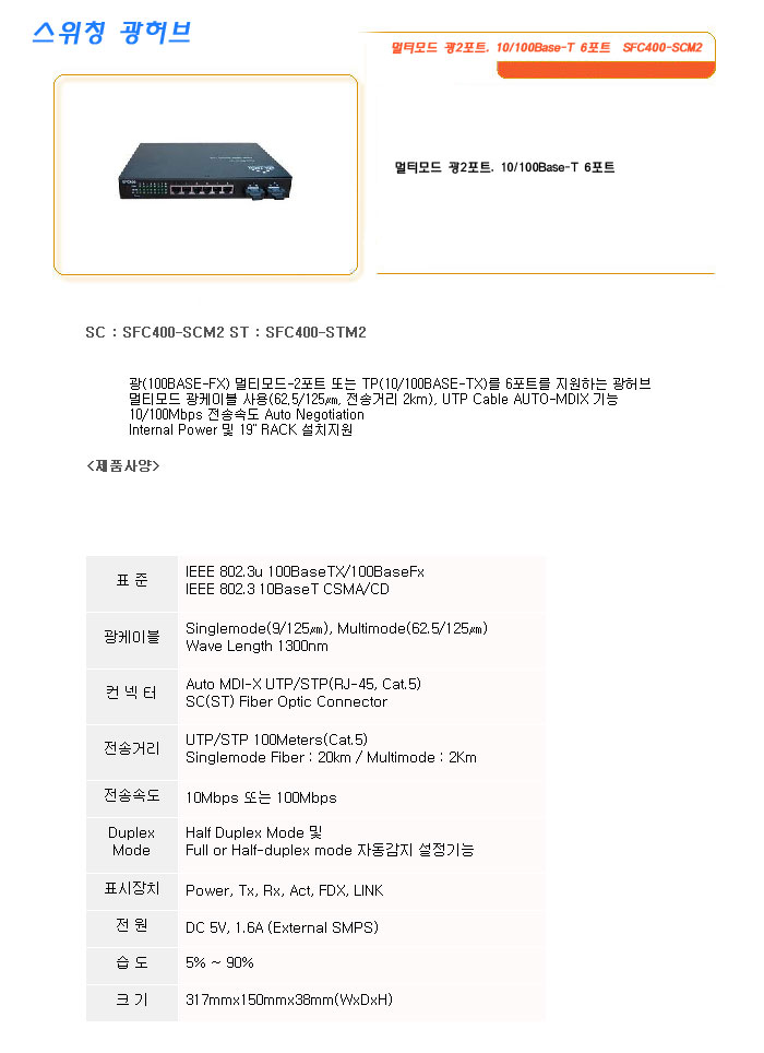 [SL] ¸ÖƼ¸ðµå ±¤2Æ÷Æ®, 10/100Base-T 6Æ÷Æ® SFC400-SCM2