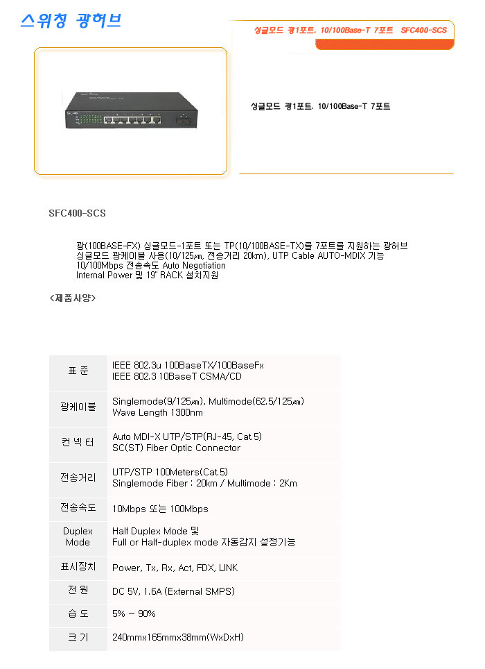 [SL] ½Ì±Û¸ðµå ±¤1Æ÷Æ®, 10/100Base-T 7Æ÷Æ® SFC400-SCS