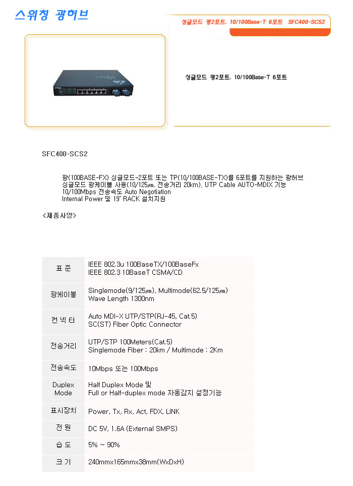 [SL] ½Ì±Û¸ðµå ±¤2Æ÷Æ®, 10/100Base-T 6Æ÷Æ® SFC400-SCS2