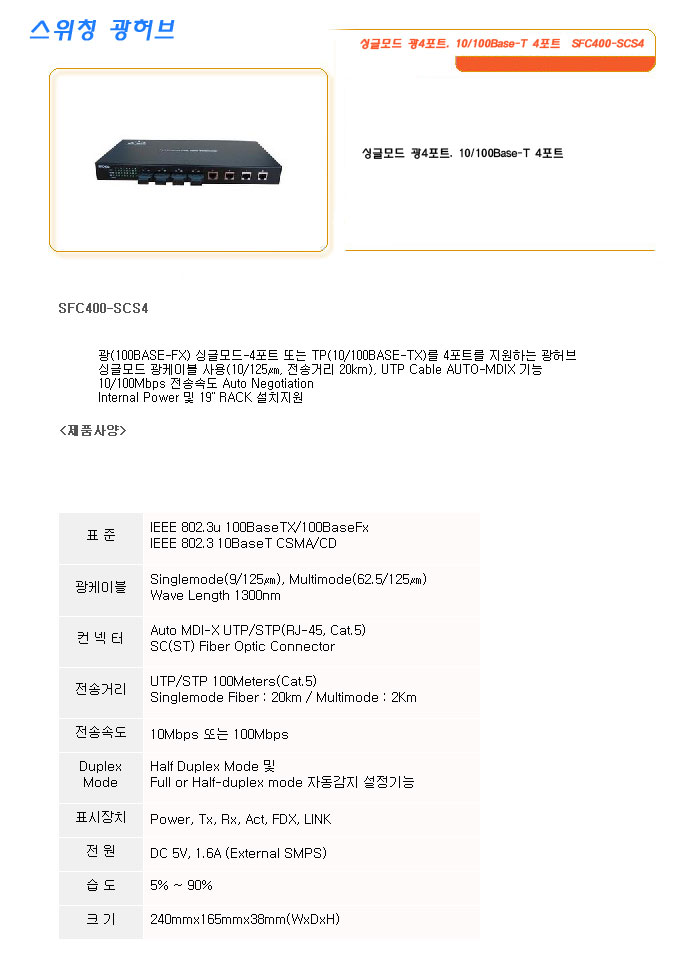 [SL] ½Ì±Û¸ðµå ±¤4Æ÷Æ®, 10/100Base-T 4Æ÷Æ® SFC400-SCS4
