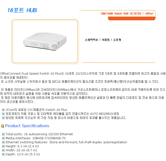 [SL] 10M/100M Switch HUB 3C16792 / 16Port (°¡°Ý¹®ÀÇ)