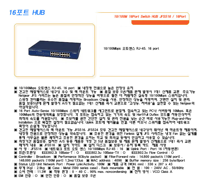 [SL] 10/100M 16Port Switch HUB JFS516 / 16Port
