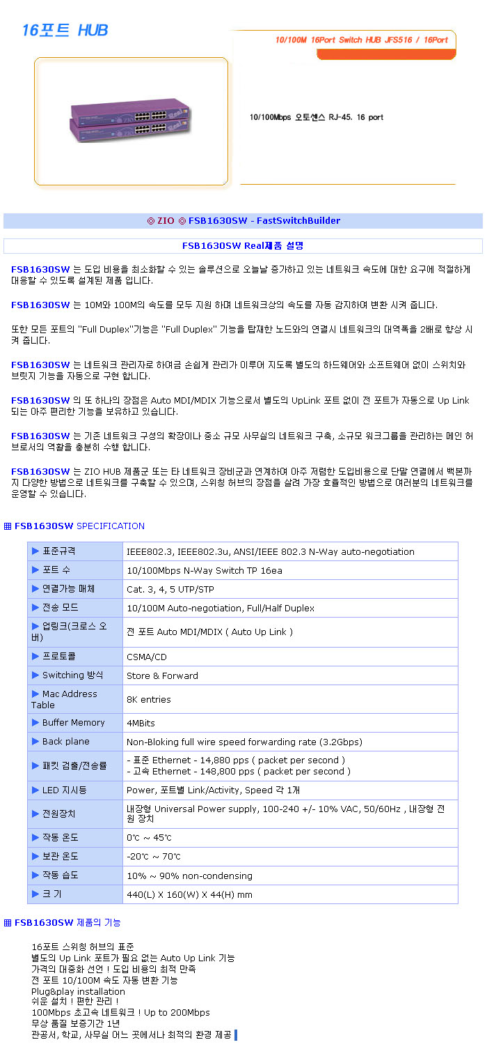 [SL] ZIO 10/100M 16Æ÷Æ® ½ºÀ§Ä¡Çãºê FSB1660SW
